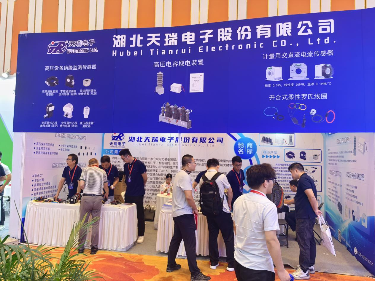 展会现场,天瑞电子通过精心设计的展台,向专业观众展示了包括高压设备绝缘监测传感器、高压取电装置、交直流传感器、开合式罗氏线圈等在内的多项创新产品和解决方案。展台采用科技感十足的蓝色主色调,吸引了众多业内人士驻足交流。公司技术团队与来自电网公司、科研院所及同行业企业的专业人士进行了深入交流,分享了在配电自动化、智能运维等领域的技术创新和实践经验。