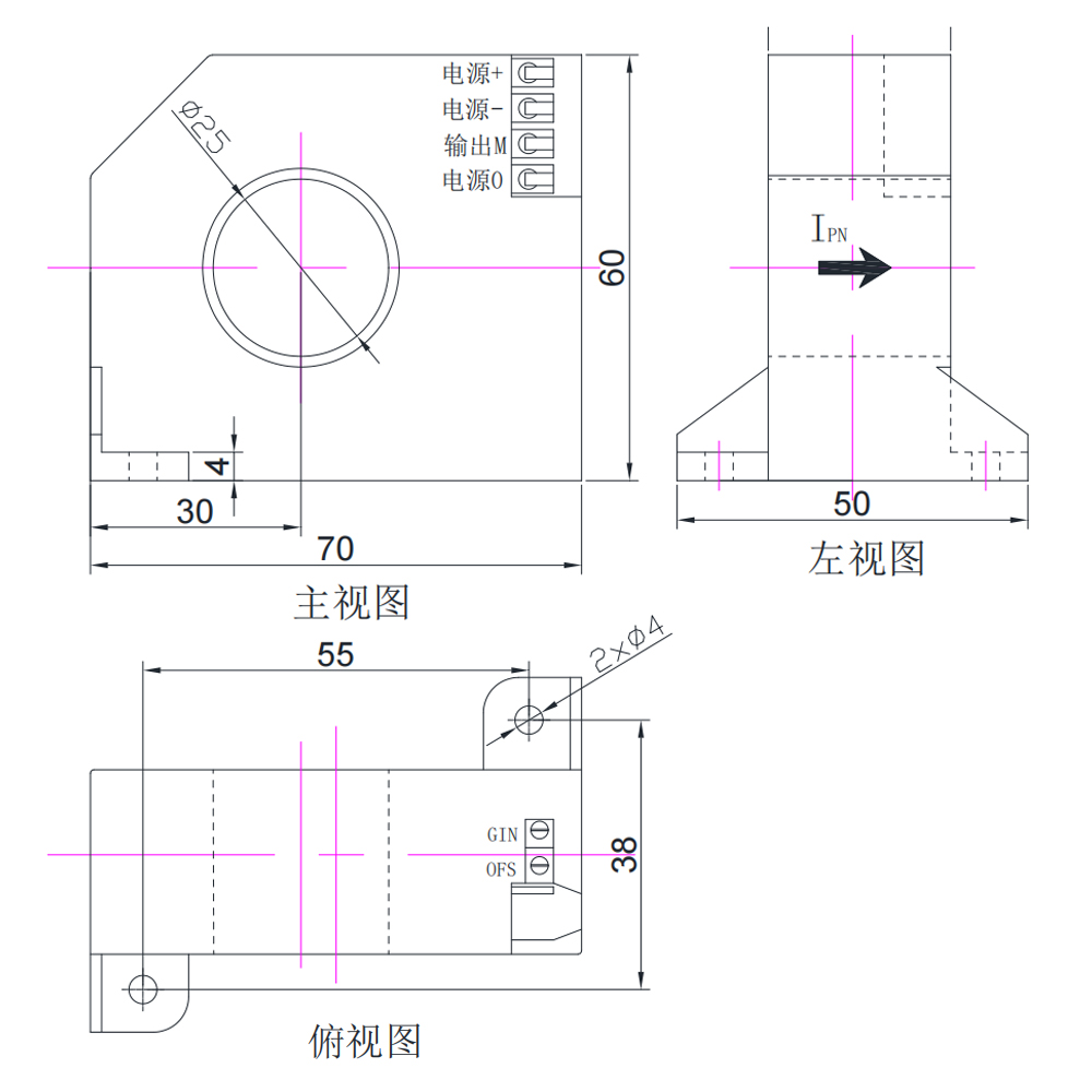 IP 原边电流测量范围 0~15 0~75 0~150 mA